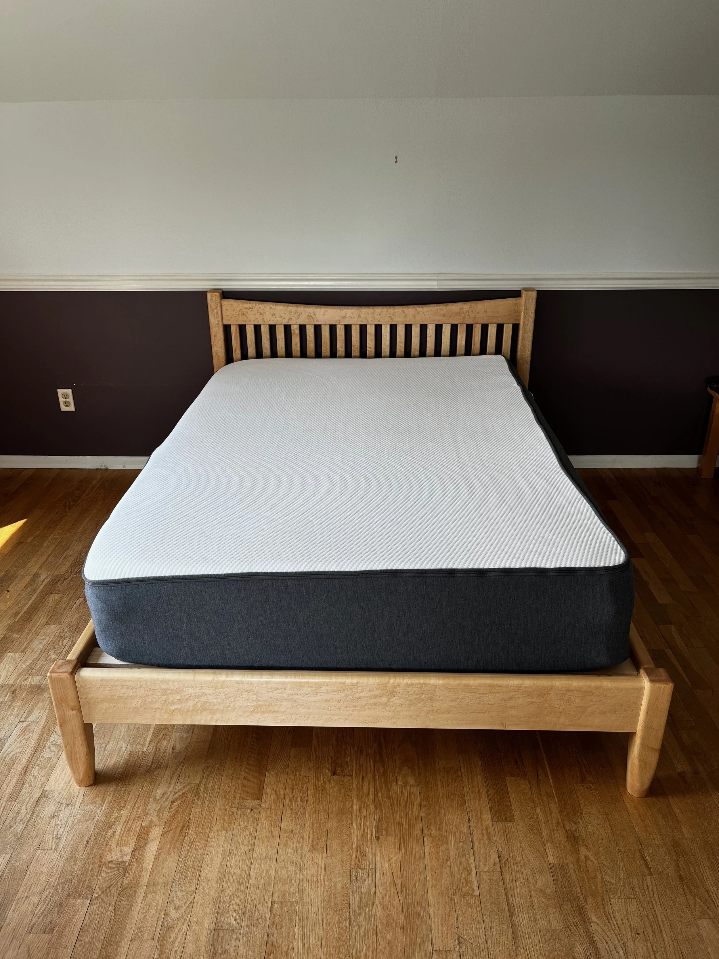 This project is largely similar to the sapele bedframe, with the notable differences being the slat construction of the headboard and the use of birdseye facades. For the thicker components, where solid birdseye maple would have been impractical, I laminated thick enough birdseye maple boards onto hard maple backing to allow for compound curves such as the top of the headboard that would be impossible with a typical veneer.